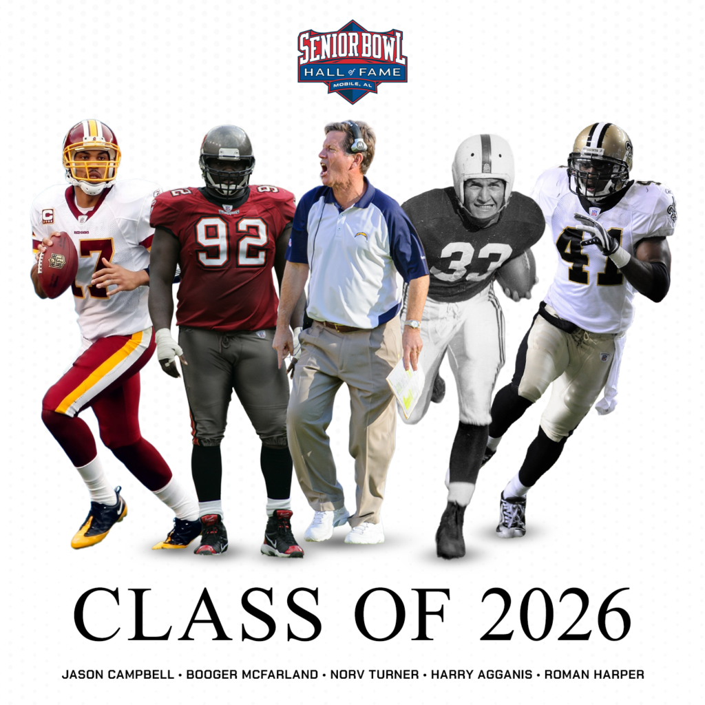 The Senior Bowl continues to cement its place as one of the most important pipelines to the NFL, and its latest announcement proves exactly why. The organization revealed its 2026 Hall of Fame class, which includes Harry Agganis, Jason Campbell, Roman Harper, Booger McFarland, and Norv Turner, while also recognizing its 2025 Rookies of the […]