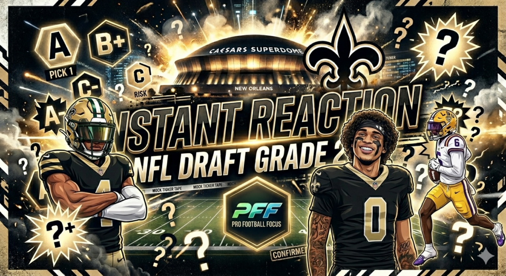 There are grades, and then there is reality. When it comes to the New Orleans Saints’ 2026 draft class, PFF’s mock draft simulator handed out a D+ overall grade, placing the class in the bottom 18% of all simulated drafts. On the surface, that number raises eyebrows. But once you dig into how the simulator […]
